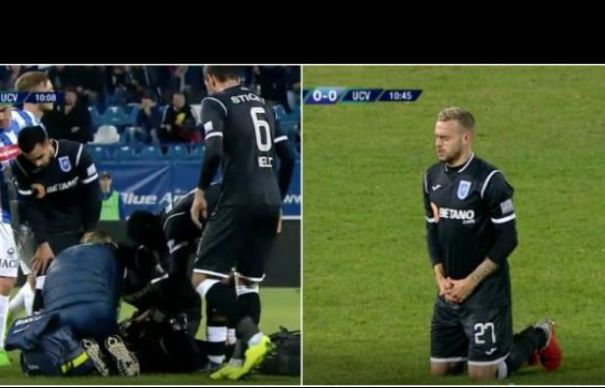 ”Jucătorul a prezentat o scurtă pierdere de conştienţă, din cauza unei posibile comoţii cerebrale. Este transportat la spital, unde se vor efectua investigaţii suplimentare. A fost transportat conştient, stabil hemodinamic şi respirator”, a declarat Diana Zinovei, medicul de pe ambulanţă.