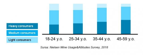 Dar cine sunt consumatorii de vin? Barbati, 35+ cu venit peste medie – acesta este segmentul ce tinde sa aiba o pondere mai mare in randul celor pe care ii numim heavy wine consumers, cei care beau vin de mai mult de zece ori pe luna. Totusi, cei care beau mai rar sunt si cei care sunt inclinati sa investeasca mai mult intr-un vin premium.
