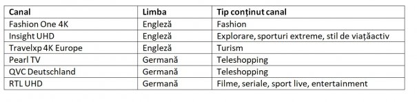 Listă canale 4K (UHD) disponibile pes atelitul SES Astra 19,20E (est), disponibile în sistem „free to air” (gratuit):
