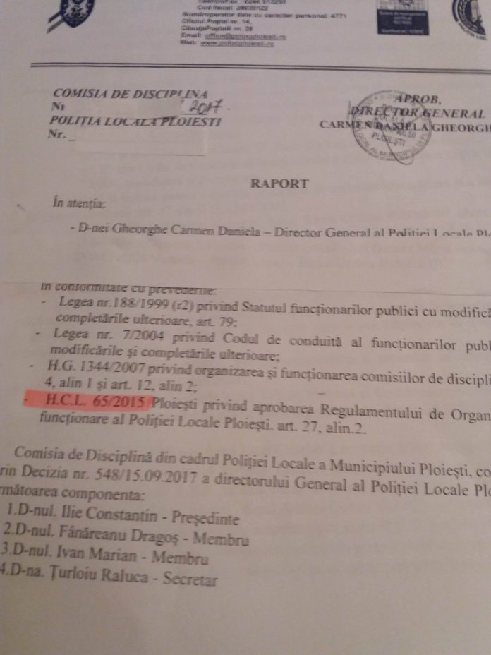 Florea Daniel, liderul sindicatului Pro-Lex este “cercetat” de Comisia de Disciplină a Poliției Locale Ploiești, fiind acuzat că a denigrat imaginea instituției prin distribuirea unor articole din presa centrala si locală pe rețeaua de socializare Facebook, articole de presa care scoteau in evidenta ilegalitatile/hartuirile/hartuirile sexuale si vocabularul “select” al directorului interimar Adrian Vaida care a prejudiciat grav atat imaginea Politiei Locale Ploiesti cat si a Primariei Ploiesti.