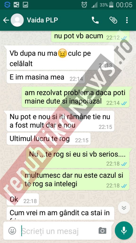 Iata o inregistrare audio si o stenograma prin care in afara faptului ca Adrian Vaida isi barfeste sotia ca il inseala cu te miri cine stie, il considera pe Florea Daniel un rival si il vorbea de rau inca din perioada respectiva doar sa ajunga in patul subordonatei: