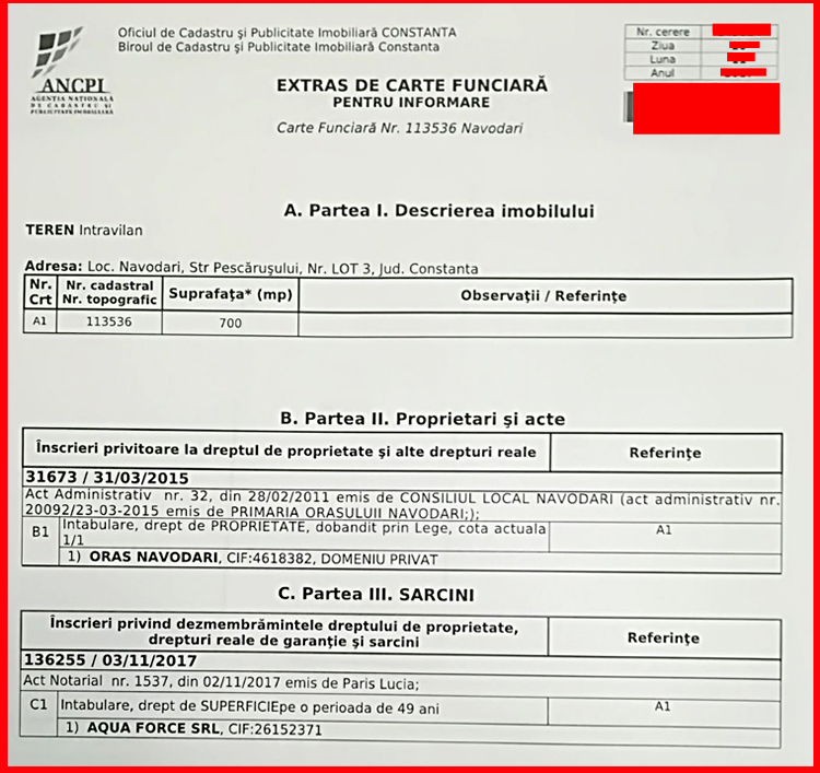 – Culmea ingineriei juridice, pe data de 23.03.2017, DAMIAN ADRIAN a împrumutat-o pe DINU ELENA cu suma de 35.000 euro pentru ca amândoi să achiziționeze cota indiviză de ½ din dreptul de proprietate asupra terenului situat în Orașul Năvodari, Mamaia-Sat, sola 25, parcelă A116/1/1 și A166/1/2, Lot 50. Actul a primit fraudulos Incheierea nr. 9 de data certa la BNP Stoica Andrei, DINU ELENA habar neavand de aceasta.