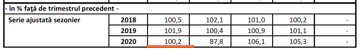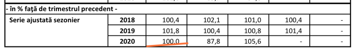 Datele din aprilie 2020 veneau să se plieze pe comanda publică a ministrului de finanțe și anume ca economia să nu scadă în primul trimestrul din 2020. Iar statistica s-a conformat: a anunțat o creștere de +0,3% în primul trimestru, în luna mai. Atunci, ca să scoată creșterea economică de +0,3% din trimestrul I față de trimestrul IV, INS recalcula în jos baza de raportare, respectiv trimestrul IV 2019, care nu mai creștea cu 1,5% în față de trimestrul II, ci doar cu 1,2%, diferența de 0,3% fiind șutată de INS în trimestrul I 2020. Ca să iasă cum spunea Cîțu.