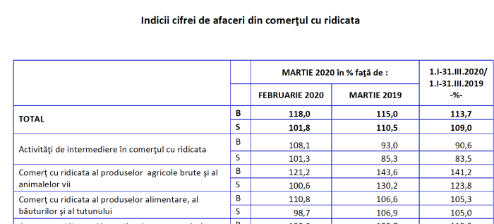 Și ca să iasă cum trebuie, într-adevăr pentru trimestrul I, INS a băgat în ele, absolut fantastic, umfând cu 18% comerțul cu ridicata în martie 2020, față de februarie 2020. Ca să iasă această cifră necredibilă, au raportat, din surse alternative, o creștere cu 41,2% în trimestrul I 2020 față de trimestrul I 2019 a comerțului cu produse agricole și berbecuți, jumătate din această creștere fiind doar în luna martie 2020 față de februarie 2020, într-o singură lună înregistrându-se o creștere de 21%. Absolut fantastic!