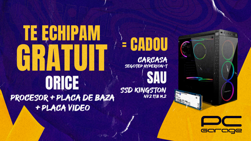 București, România – PC Garage, unul dintre cele mai mari magazine online de produse IT și electronice din România și în același timp un reper pentru toți cei pasionați de tehnologie, anunță o nouă ediție a campaniei „Te echipăm gratuit”. De data aceasta, campania oferă cadou clienților un SSD M.2 NVMe sau o carcasă ARGB. Campania se desfășoară în perioada 12 iunie – 25 iunie 2023 pentru clienții care vor cumpăra orice procesor + orice placă de bază cu o valoare cumulată de minim 2200 lei.