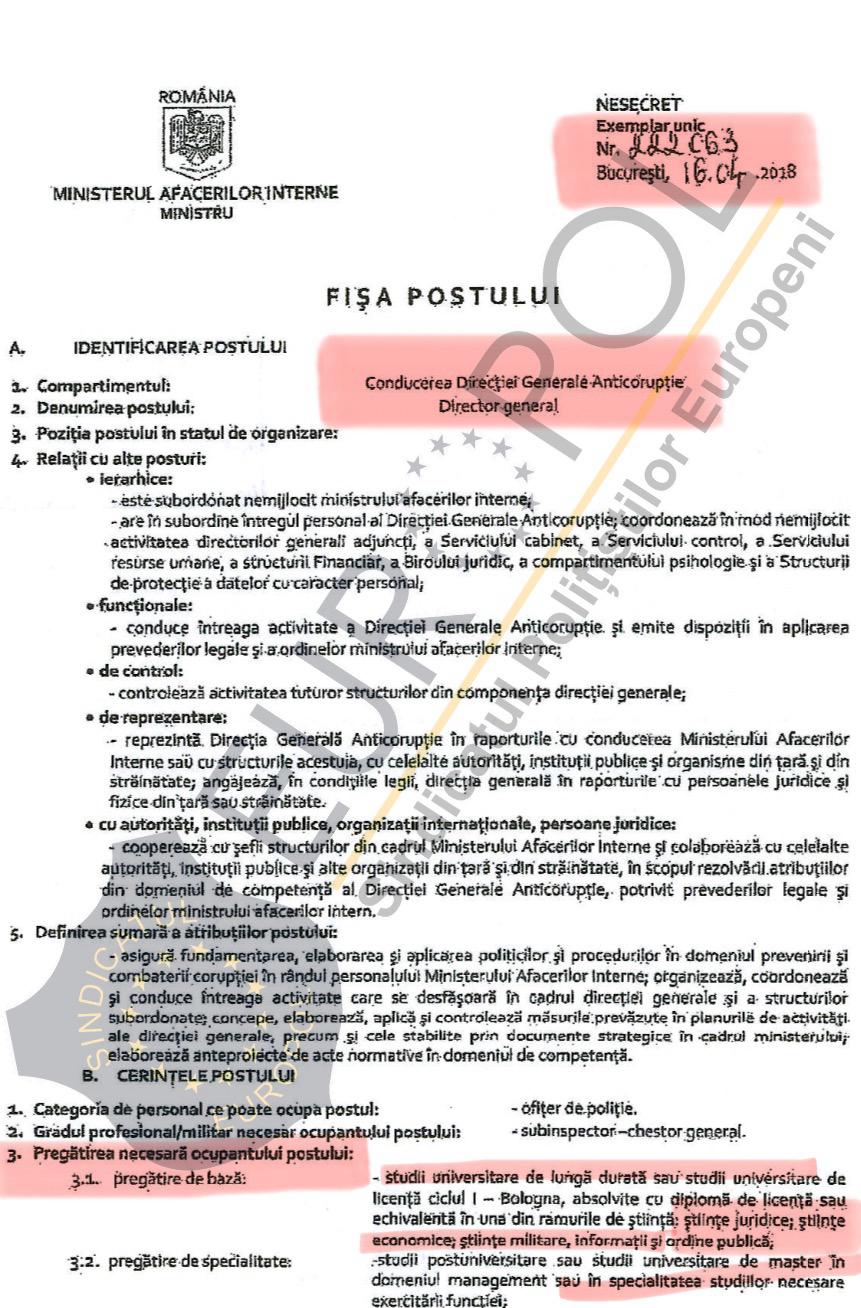 Fără să ne facem greșit înțeleși, nu avem nimic împotriva absolvenților de studii superioare din domeniile de mai sus, însă pentru o structură de specialitate, cum este Direcția Generală Anticorupție este lipsit de orice fundament să duci în derizoriu cerințele de ocupare doar pentru a fi puși în funcție oamenii agreați conducerii politice a Ministerului Afacerilor Interne, mai precizeaza sursa citata. (Sava N.).